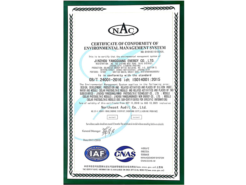 環(huán)境管理體系認(rèn)証証明書(shū)(中國(guó)語(yǔ))