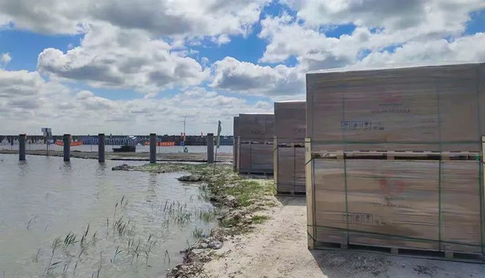 近期臺風(fēng)頻繁登陸,我國北方地區(qū)多降大雨,部分貨物運輸?shù)缆繁粵_毀,該項目地處吉林省白城市,受到此次臺風(fēng)天氣影響較大。為了保障項目順利開工,本次供貨采用了陽光能源專為大客戶定制的物流服務(wù)網(wǎng)絡(luò),目前首批組件已準(zhǔn)時抵達了項目現(xiàn)場,項目預(yù)計將于今年年底前竣工、并網(wǎng)。