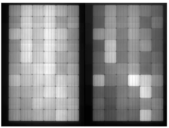 2019年9月,F(xiàn)raunhofer 實(shí)驗(yàn)室MatthiasPander團(tuán)隊(duì)公開發(fā)表了《Prediction of potential power/field lossfrom LeTID susceptible modules》,論文對LeTID組件的功率衰減進(jìn)行了詳細(xì)的研究,如下圖為經(jīng)過690h測試后的單晶PERC組件EL照片,組件內(nèi)部的電池亮度均勻性變差,部分電池已經(jīng)呈現(xiàn)性能衰減。