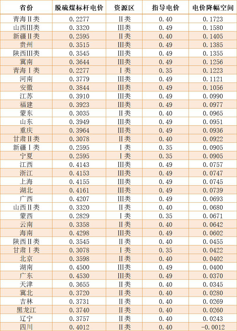 從電價降幅空間來看,青海、新疆二類、山西三類、貴州、陜西、冀南、河南、安徽等地降價幅度均可超過0.1元/千瓦時,相對競價優(yōu)勢更為明顯一些。但以四川、冀北、湖南、廣東以及東三省為代表的地區(qū),電價降幅空間僅有2-3分/千瓦時左右。具體數(shù)據(jù)見下表: