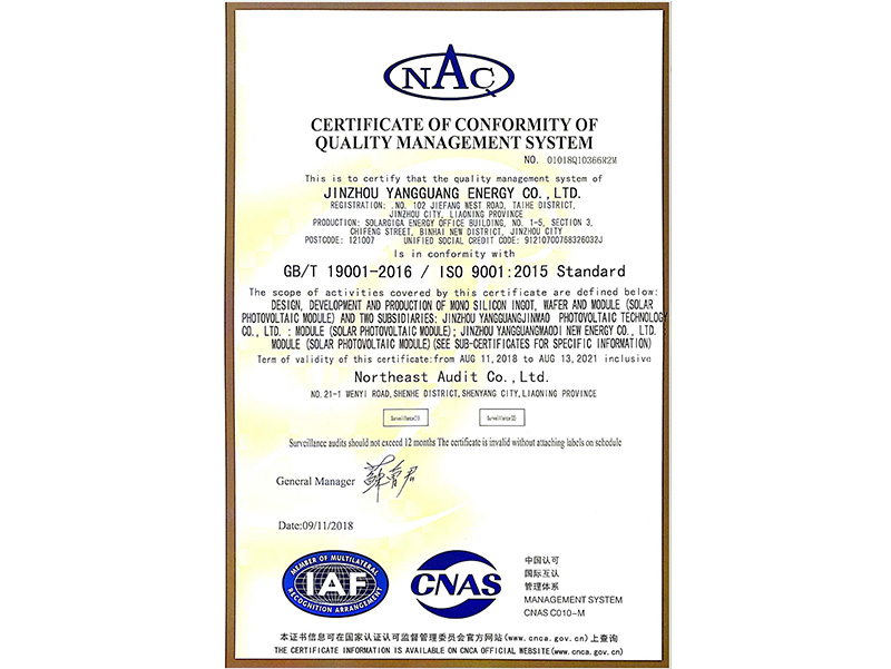 質(zhì)量管理體系認(rèn)證證書(shū)(英文)
