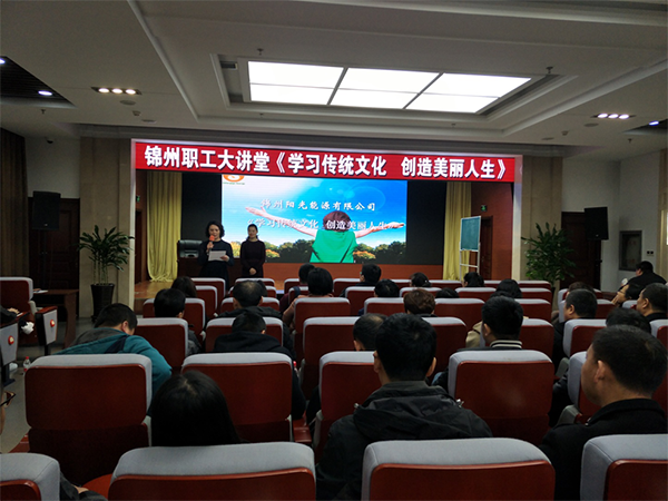 為弘揚優(yōu)秀傳統(tǒng)文化,傳承國學(xué)先賢思想,提升幹部職工思想道德境界,3月16日我司工會在錦州市職工會館四樓組織開展《學(xué)習(xí)傳統(tǒng)文化、創(chuàng)造美麗人生》培訓(xùn)講座,集團職能部門管理人員及各專業(yè)公司主管及以上人員、光伏行業(yè)各企業(yè)職工共計160人參加。