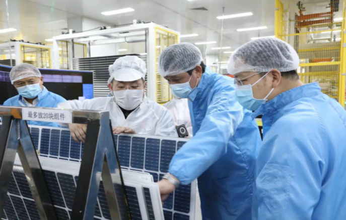 上午10時30分,市領(lǐng)導(dǎo)來到我錦州陽光能源有限公司全資子公司錦州創(chuàng)惠新能源有限公司,走進(jìn)生產(chǎn)車間現(xiàn)場瞭解企業(yè)年產(chǎn)1GW高效太陽能元件數(shù)位化車間專案相關(guān)情況。我公司總經(jīng)理張海陪同市領(lǐng)導(dǎo)一行,張總介紹:該專案達(dá)產(chǎn)後,可實現(xiàn)15億元的銷售收入,並作為東北地區(qū)領(lǐng)先智慧工廠帶動同行業(yè),完成再生能源佈局優(yōu)化和提質(zhì)增效,加快推動企業(yè)向清潔低碳模式轉(zhuǎn)變。