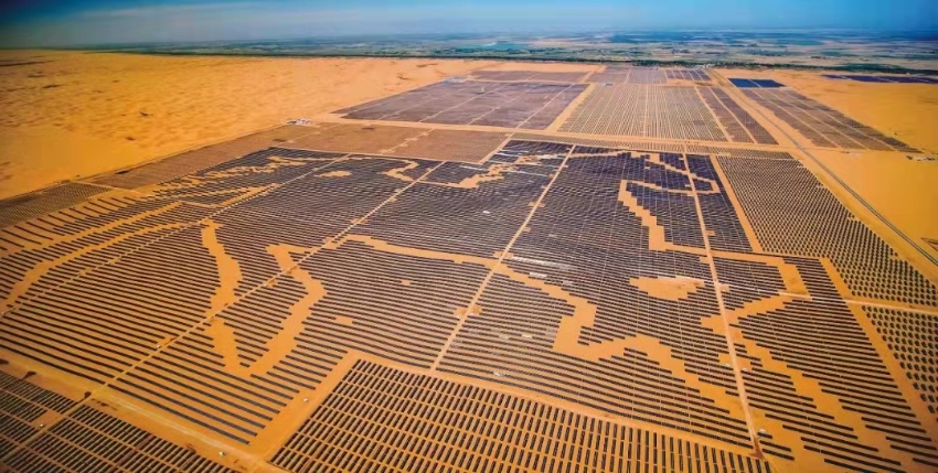 距離內蒙古達拉特電站正式運行已四年光景。自投入運行以來,內蒙古達拉特電站累計輸出綠電約23.12億千瓦時,相當於節(jié)省了76萬噸標準煤,減少了185萬噸的二氧化碳排放。為了提高光伏治沙效能,該電站除了進行板上發(fā)電,還在板間種植了黃芪、沙棗、黃芩等植物,實現(xiàn)了“林光互補”、防風固沙的作用,有效遏制了庫布齊沙漠擴展。不僅為當?shù)鼐用駧砹私洕б?,更?chuàng)造了社會效益,實現(xiàn)沙漠治理和生態(tài)修複的雙重意義。